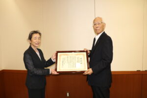 その際に、感謝状と併せて豊平作業所で育てた作物も一緒にお届けしました。